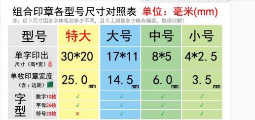 有一部分客戶需要的不僅僅是logo,而是需要順序印刷的編碼,例如“shuanglong-001”一直到“shuanglong-1000”這樣的話使用絲網印刷就明顯的不行了,我們不可能去做一千個絲網版。這種情況下我們一般使用活字碼人工進行印刷,費事費力,并且印刷出來不是特別的規(guī)范美觀。如果同行有更好的方法請不靈賜教,我的QQ:764234081。下圖就是我們常用的活字碼的尺寸表。